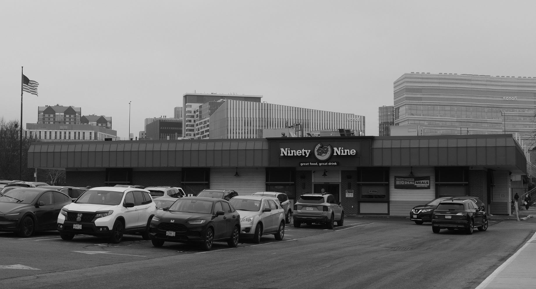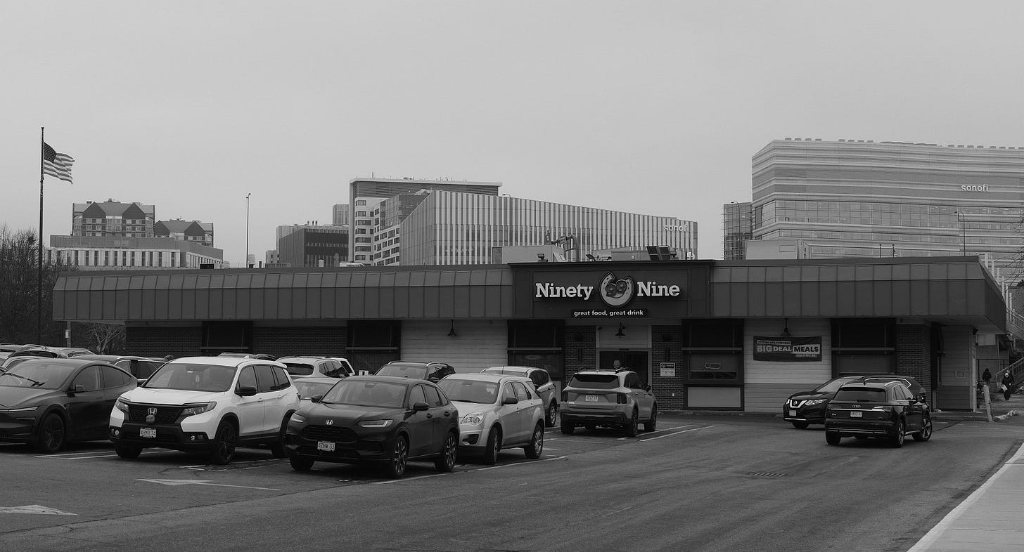 The Ninety Nine began in Boston in 1952. Charlie Doe opened the original at 99 State Street with a simple idea: something between a fancy restaurant and a cheap diner. A place where people knew your name. The concept was a hit and helped pioneer casual dining across America. Today there are nearly a hundred locations. But this one is still built the original way, the bar at the center of everything, not optimized for table turnover.